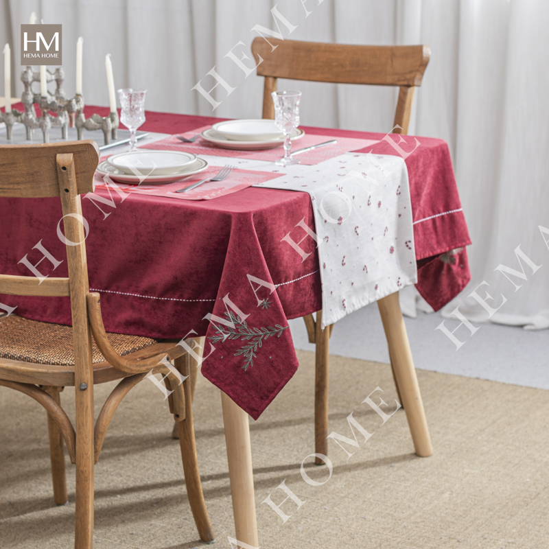 Polyester digital print christmas pattern table cloth with 1cm hemming.