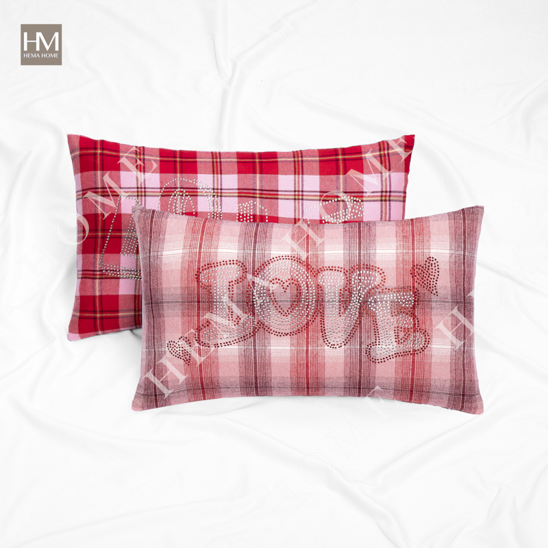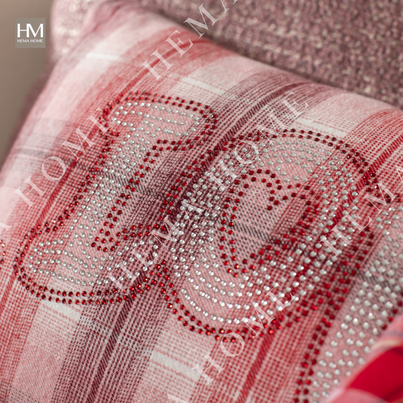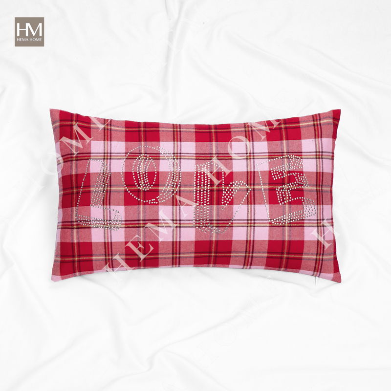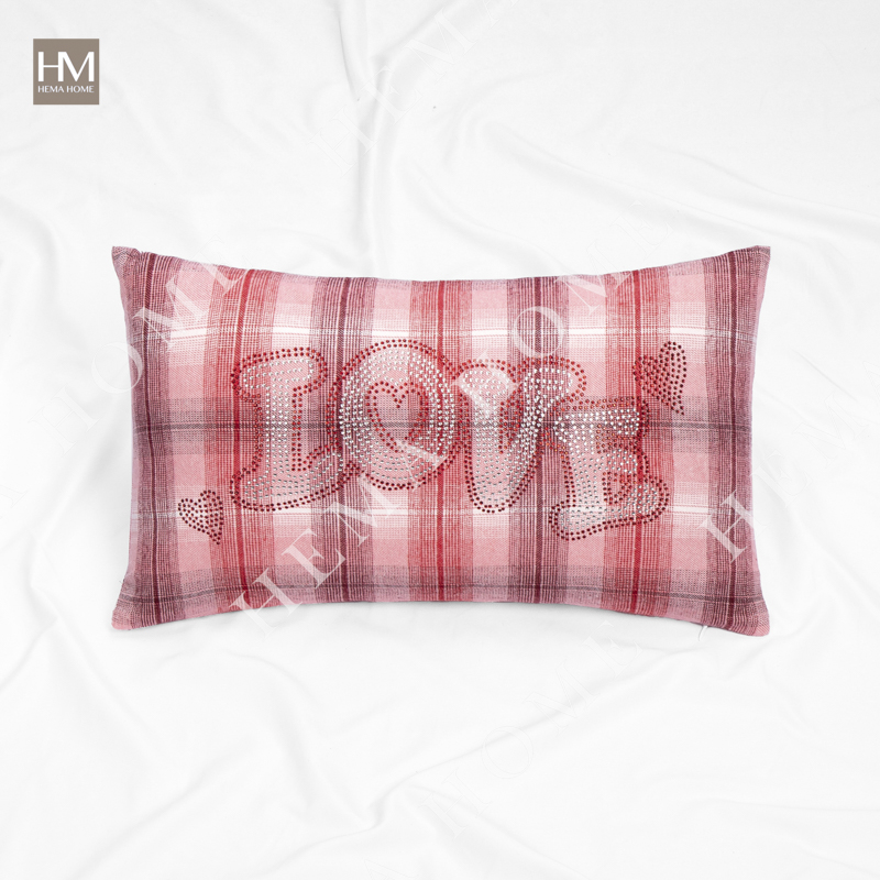 Rhinestone Embellished Love Pattern Cotton Cushion