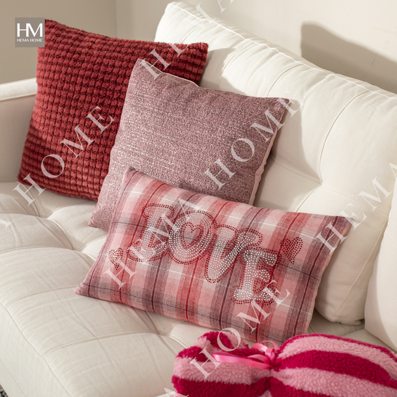 Rhinestone Embellished Love Pattern Cotton Cushion