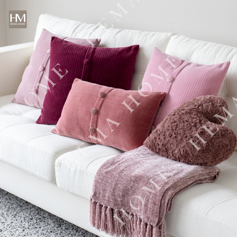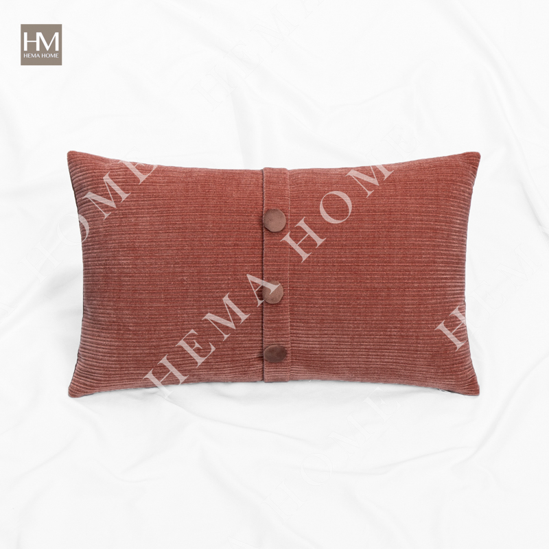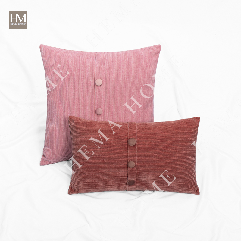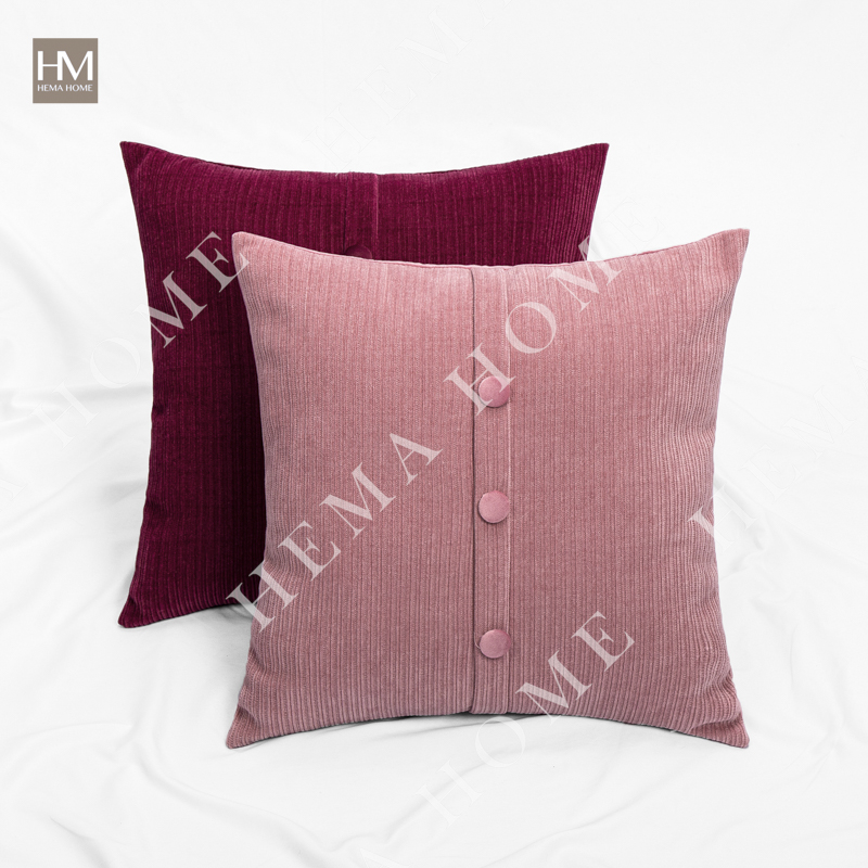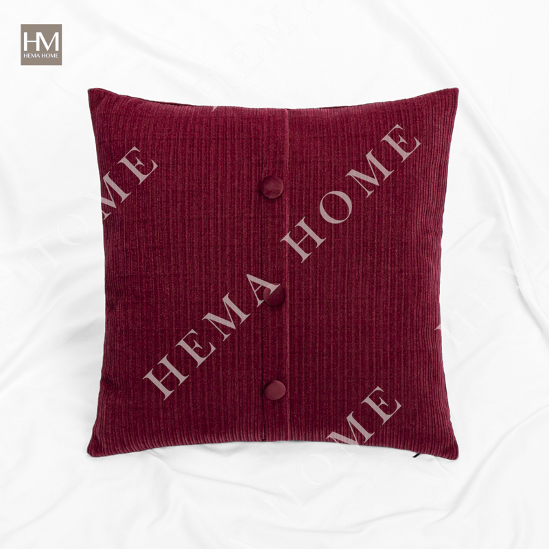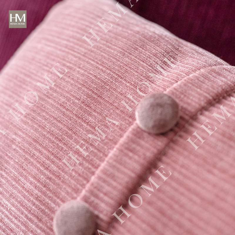 400GSM Solid Stripe Pattern Polyester Wrinkled Cushion with Buttons and Velvet Back.