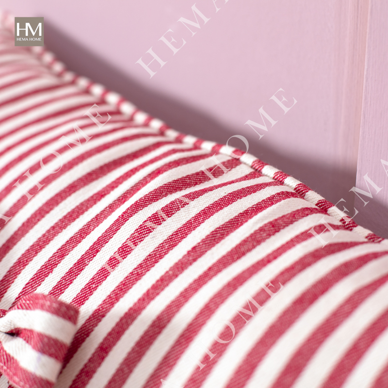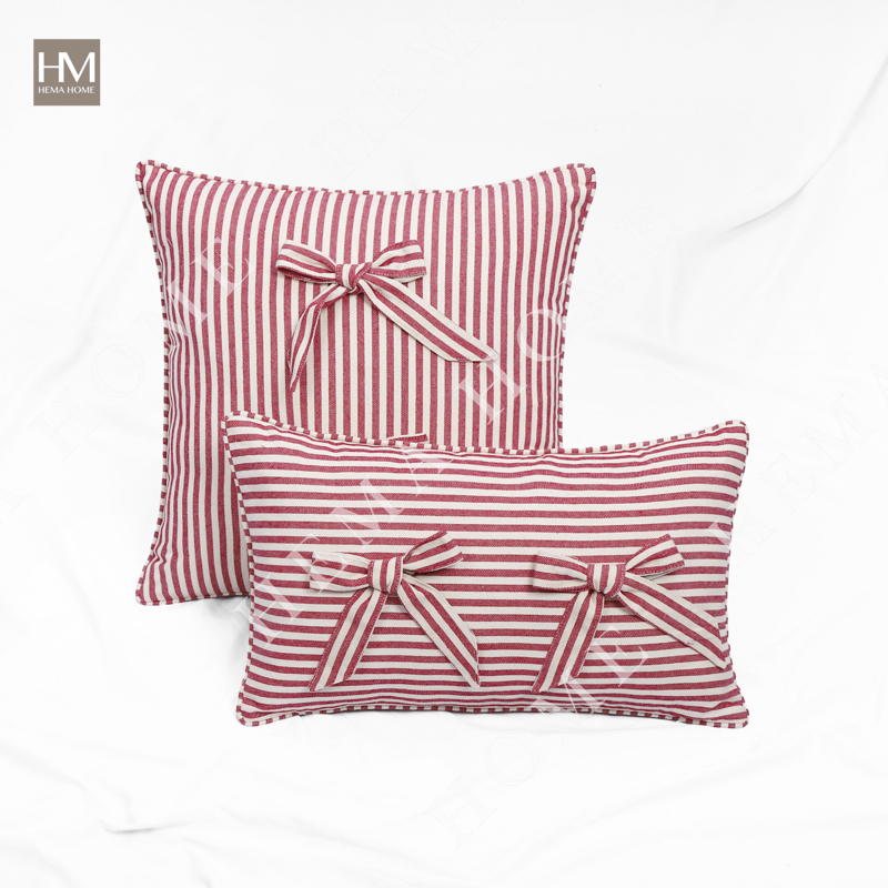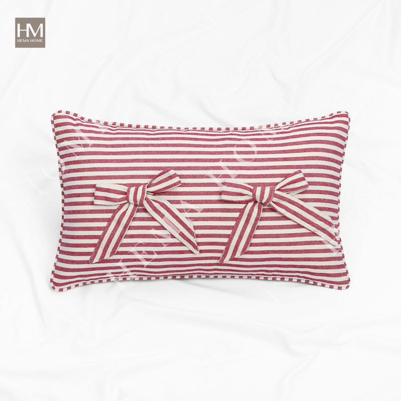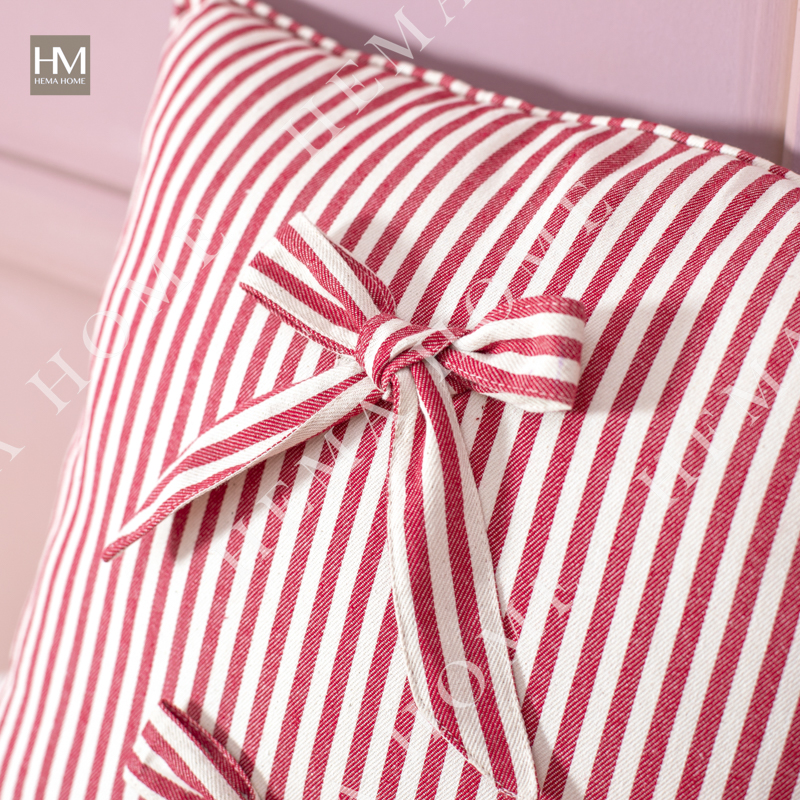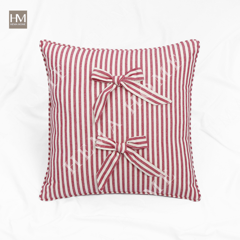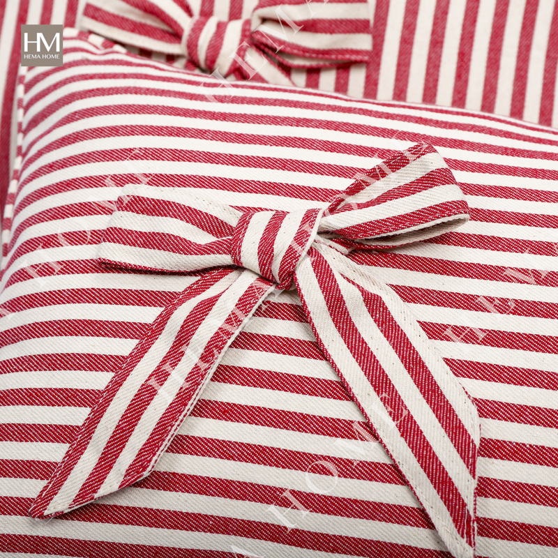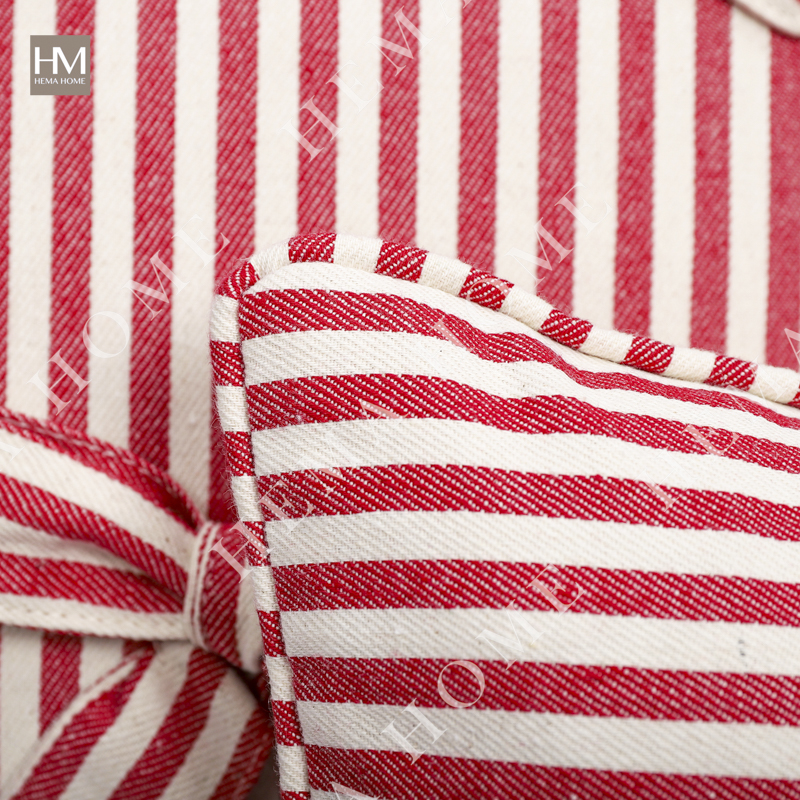 Front side is 206GSM stripe pattern cotton fabric with bowknot,back side is 260GSM stripe pattern cotton fabric.