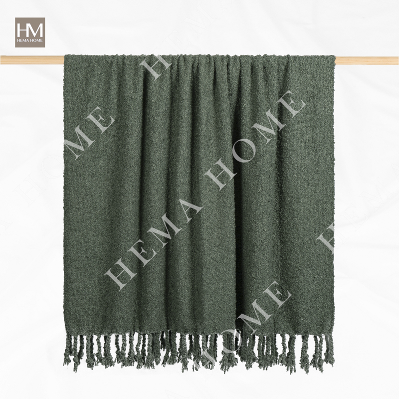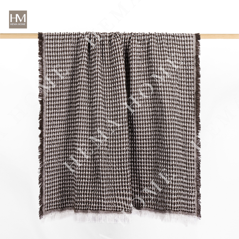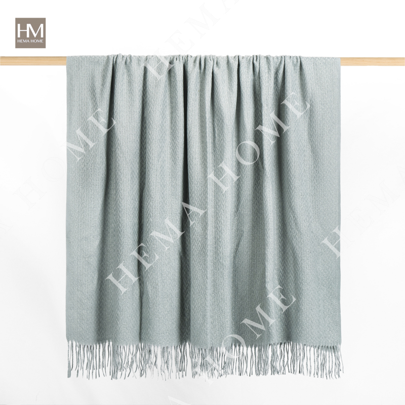 Jacquard Geo-Pattern Acrylic Blanket with Fringes