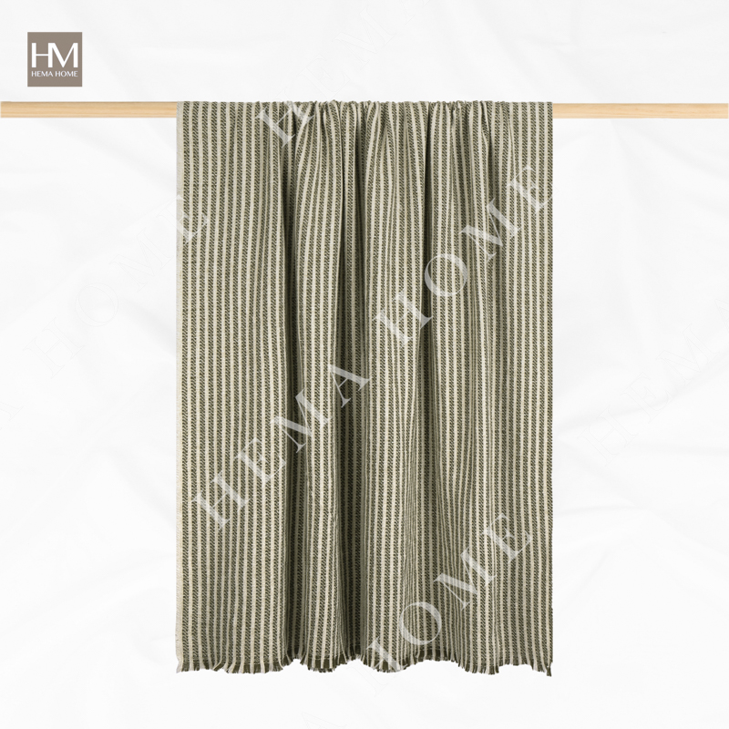 Knitted Stripe Pattern Acrylic Blanket with Fringe