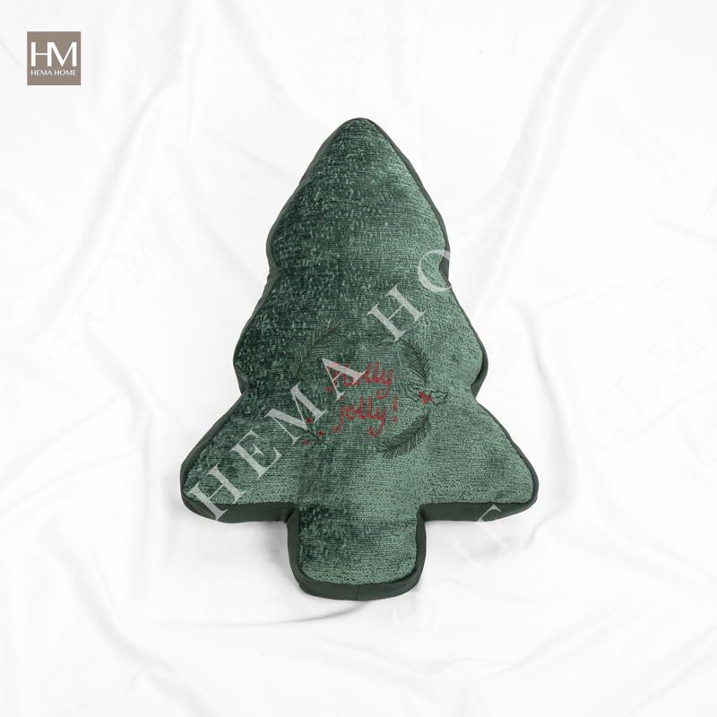 Embroidered Xmas Leaves Pattern Xmas Tree Shaped Cushion/Embroidered Xmas Leaves and Bow and line Pattern Chenille Wreath Shaped Cushion