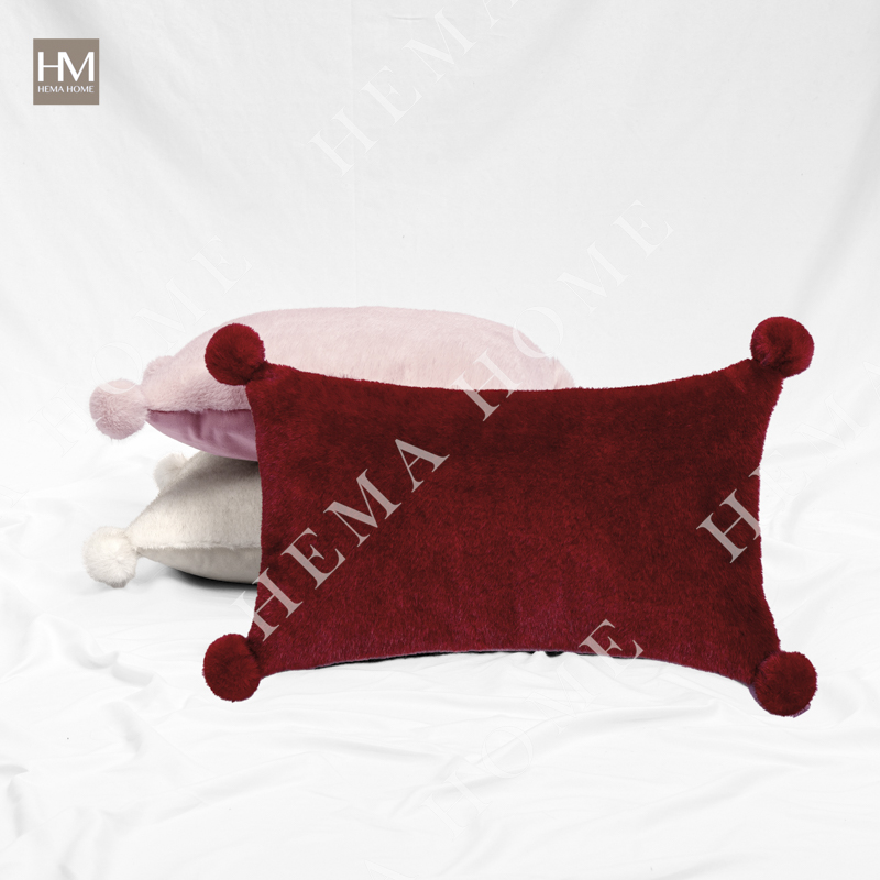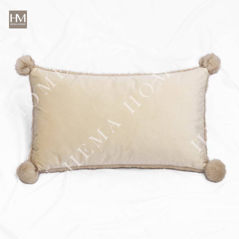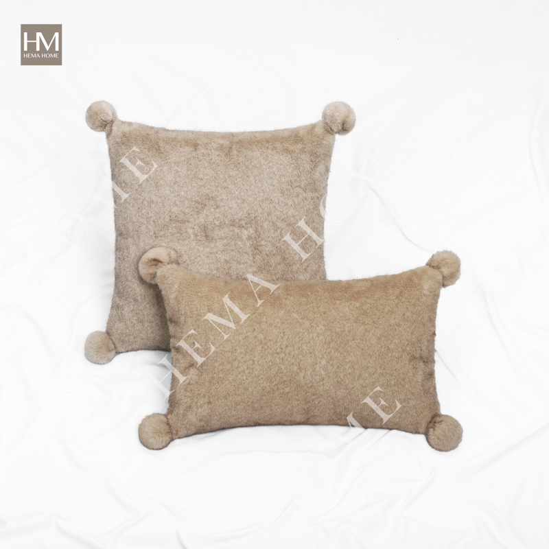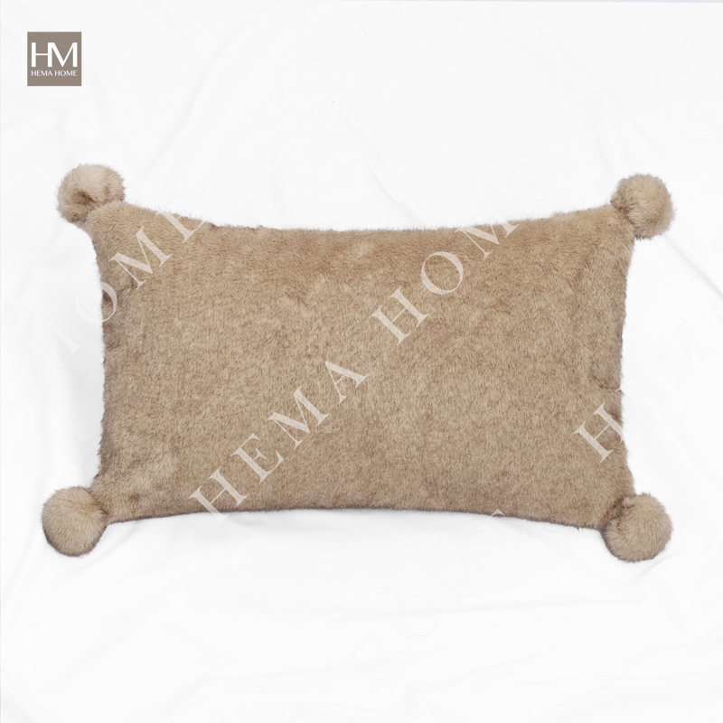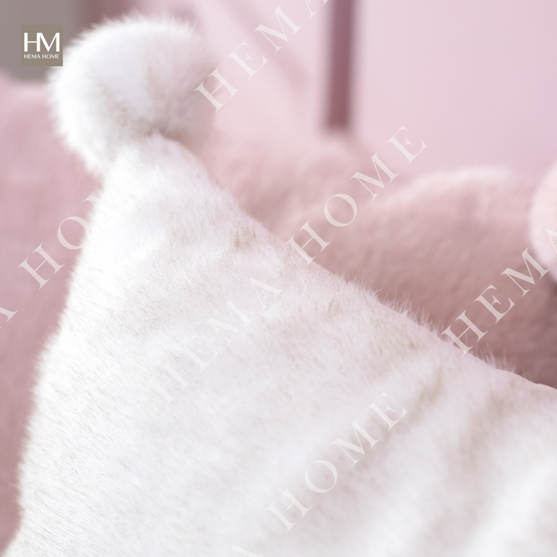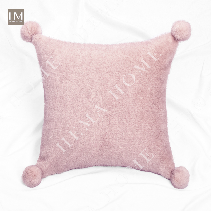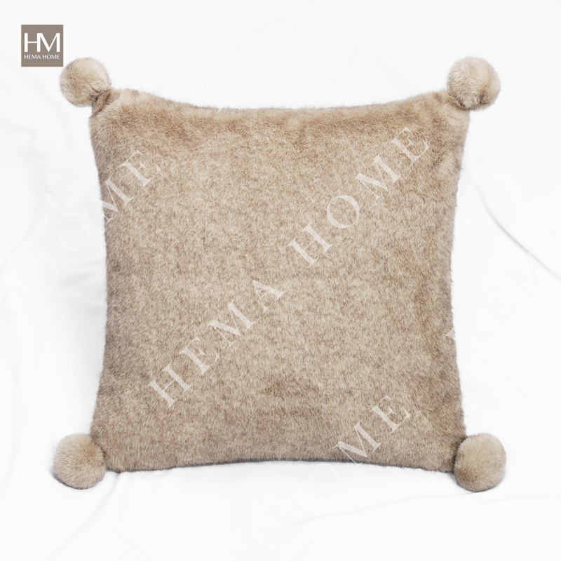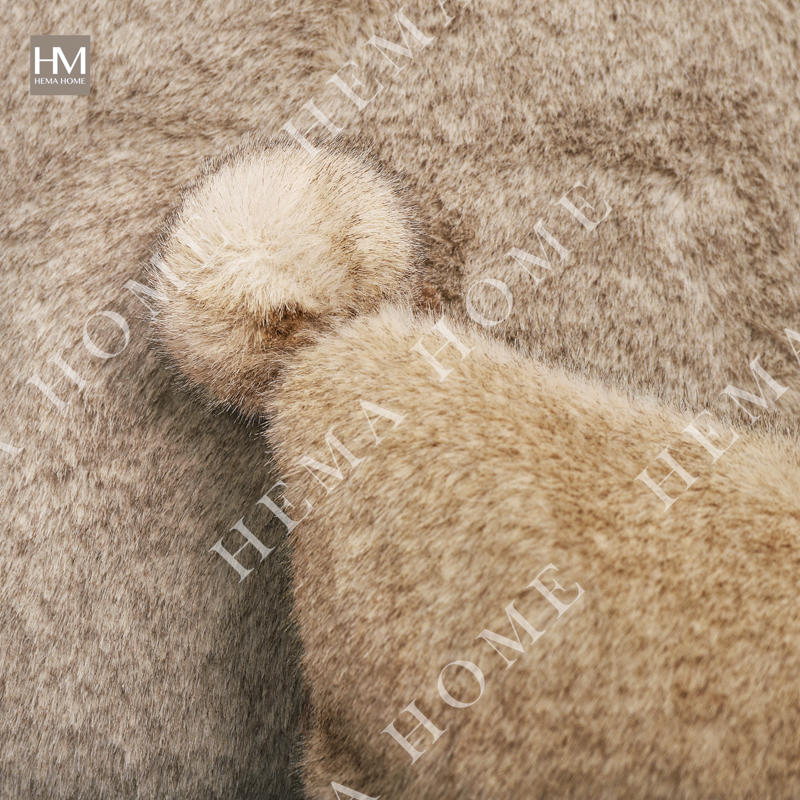 Tip-Dyed Faux Mink Fur Cushion with Pompoms