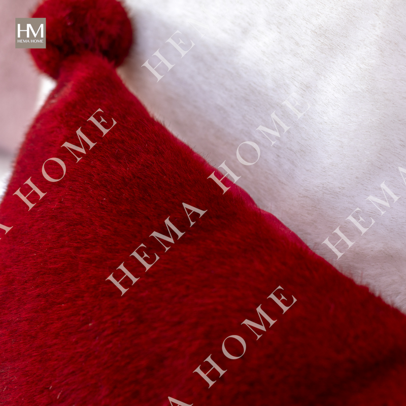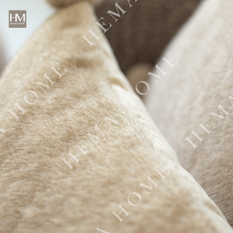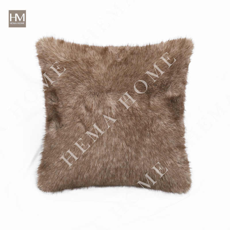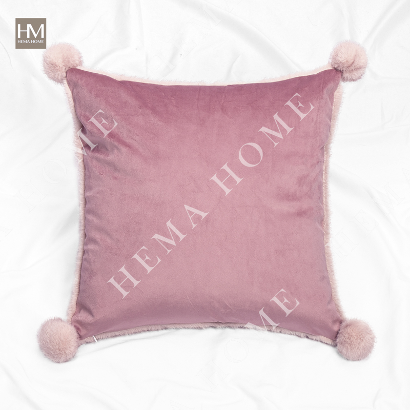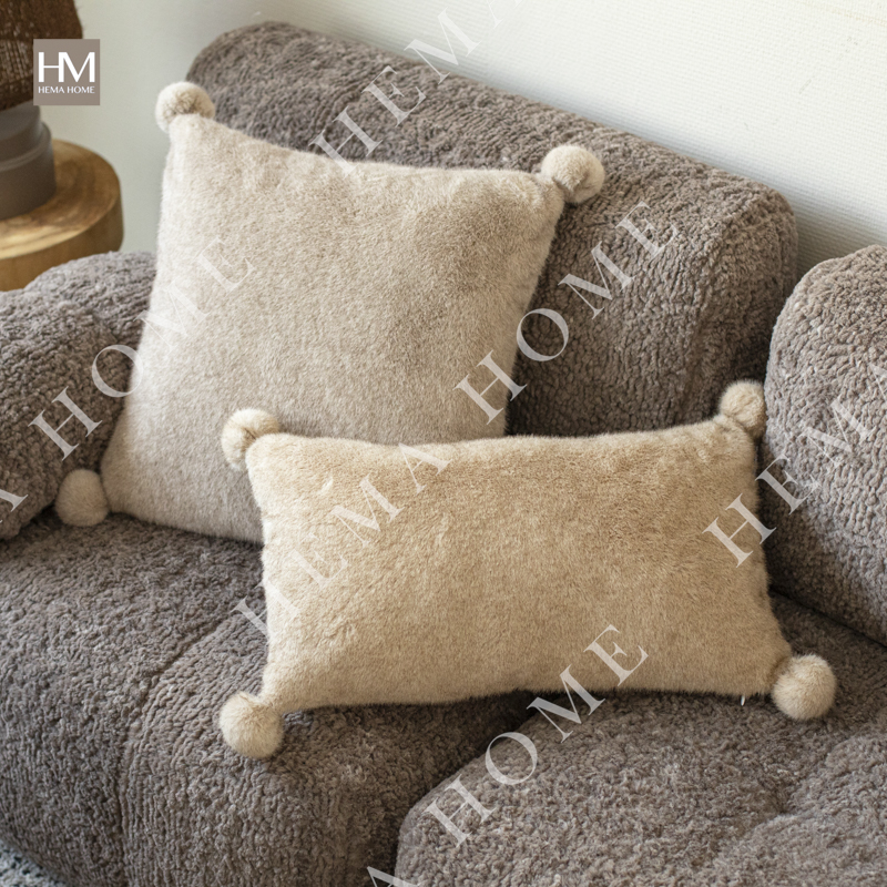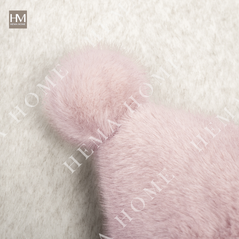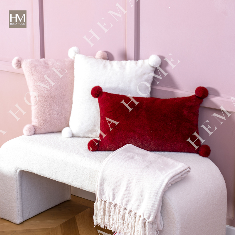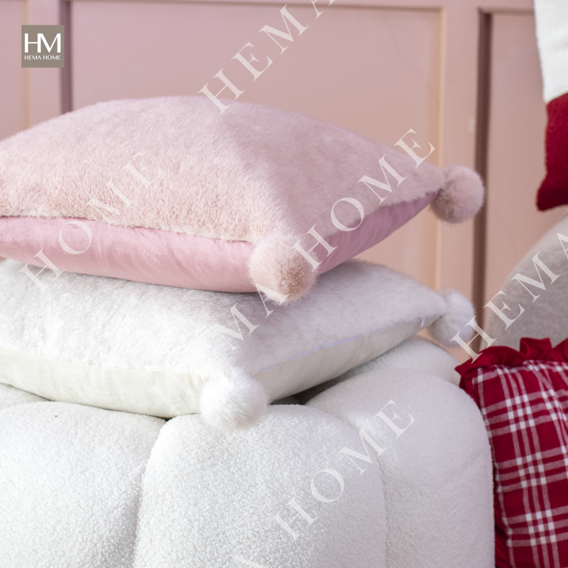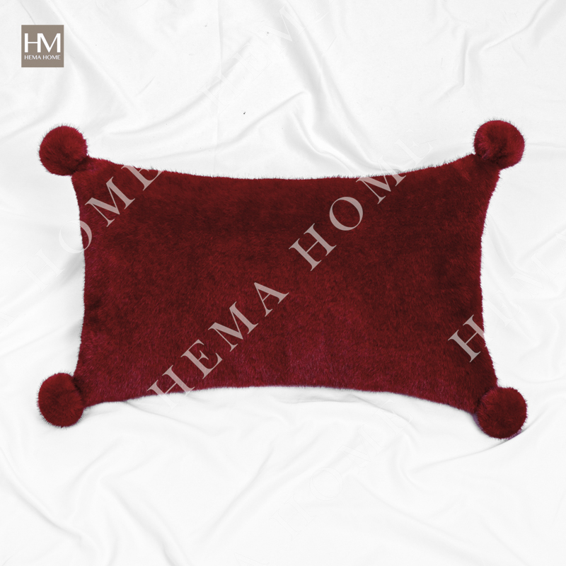 Tip-Dyed Faux Mink Fur Cushion with Pompoms